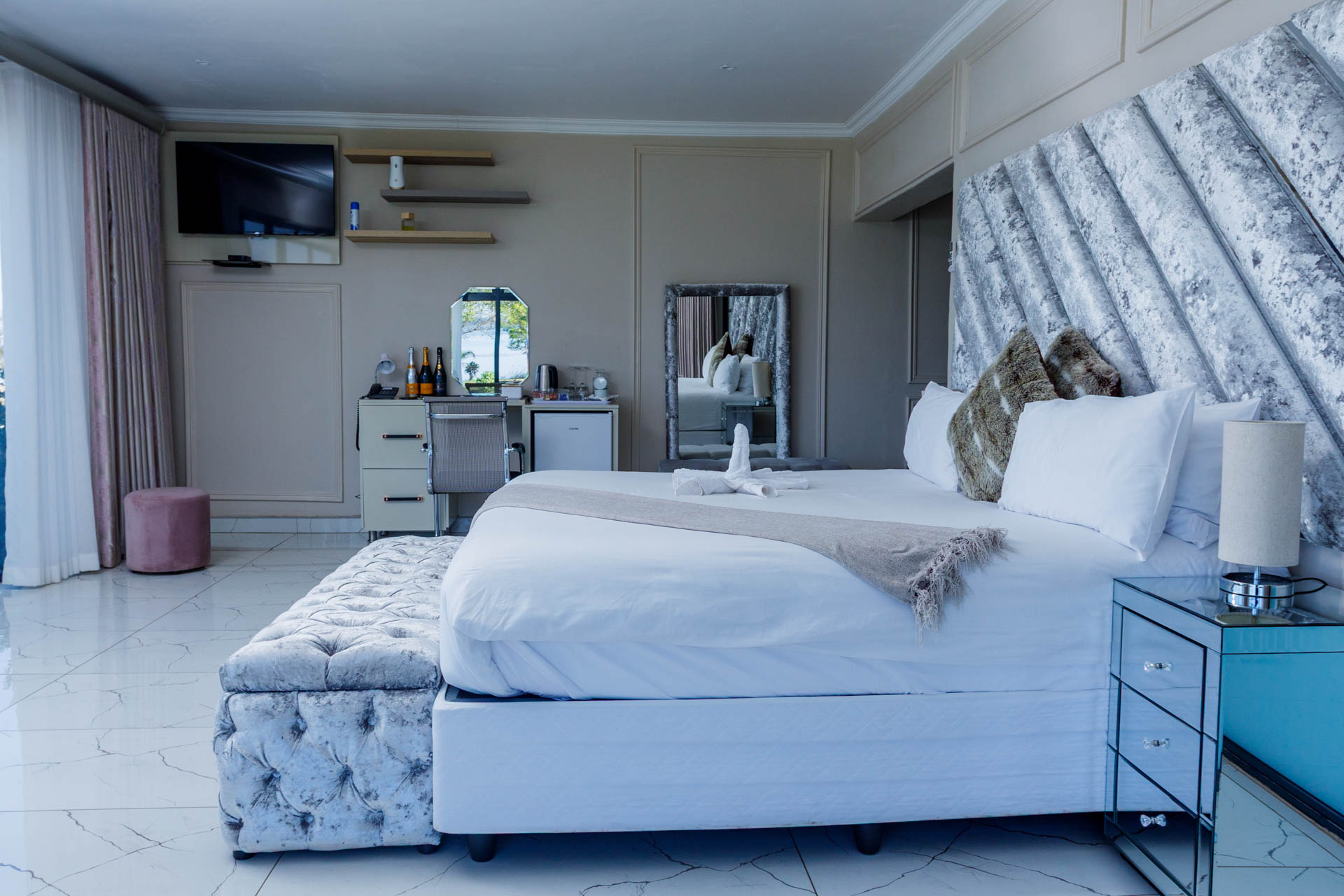 Our most exclusive suite, offering unmatched luxury with panoramic views of the dam and pool. The Presidential Suite combines elegance, space, and world-class comfort for a truly memorable stay.
