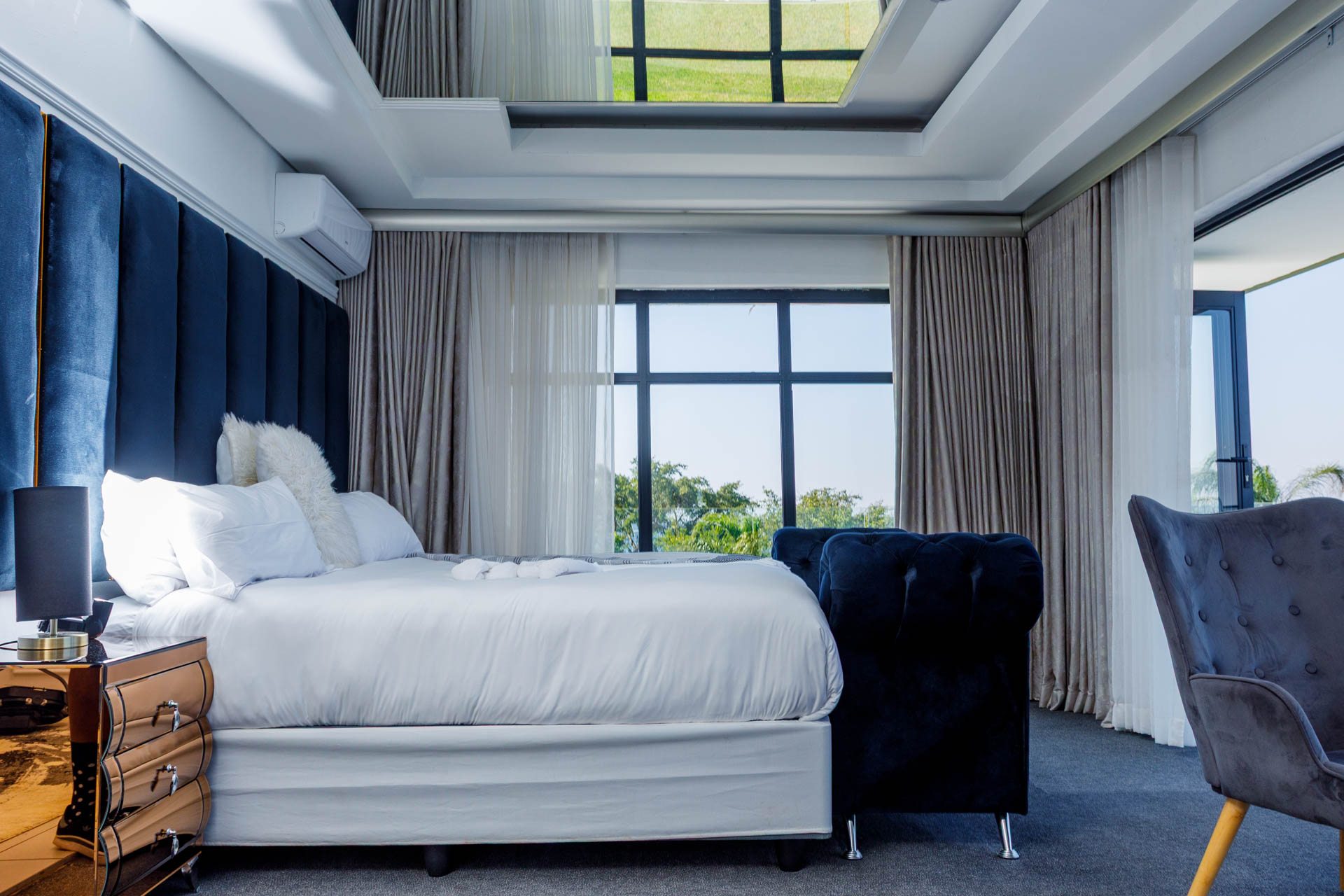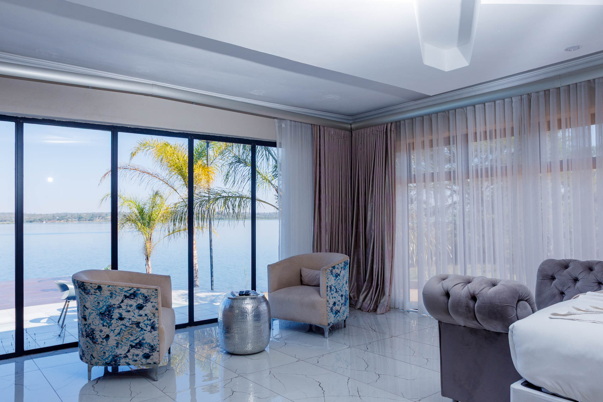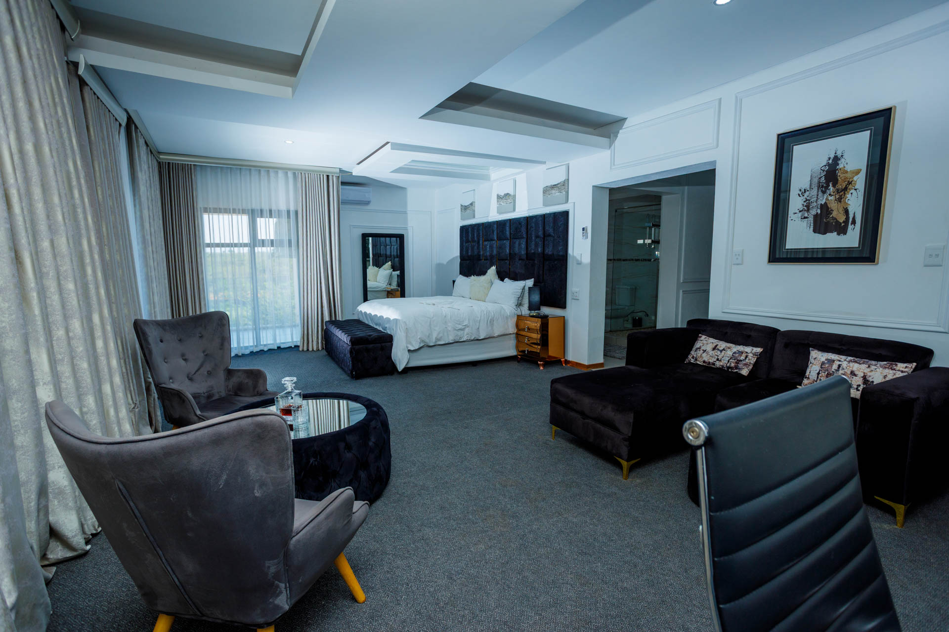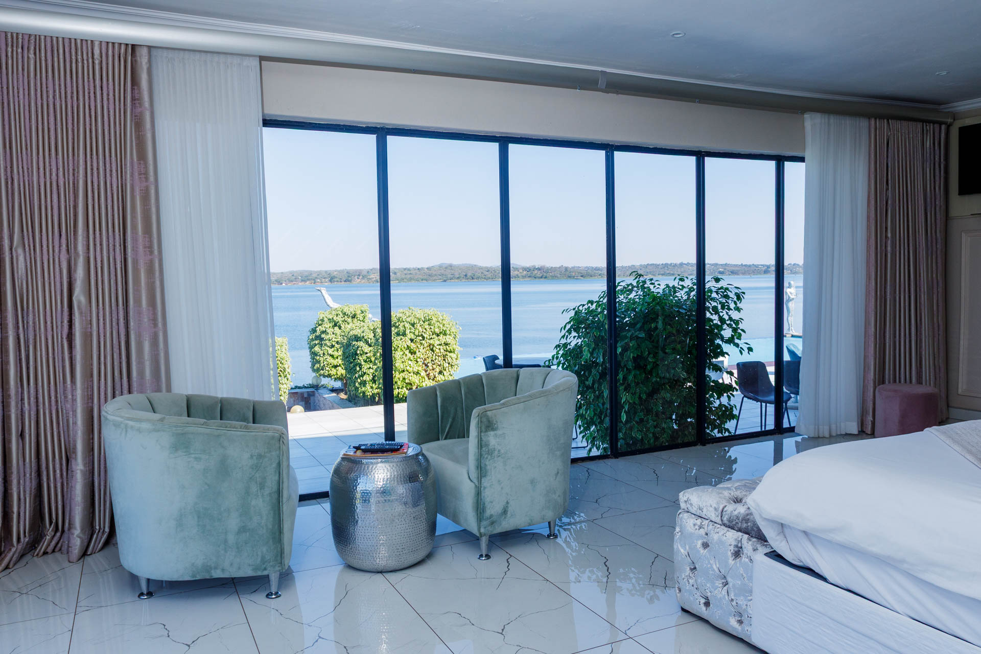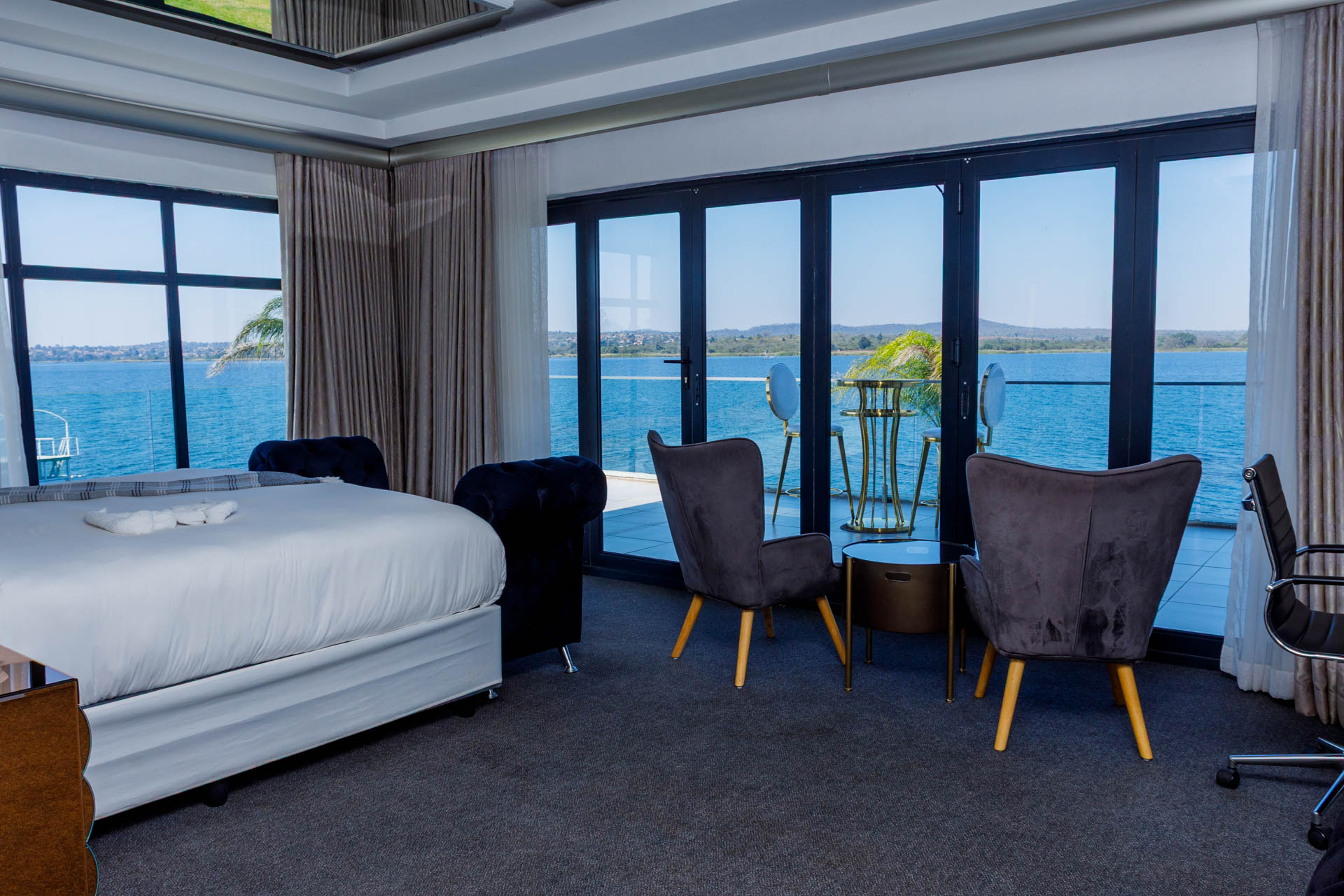 Enjoy a luxurious stay in this elegant en-suite room featuring breathtaking views of both the dam and pool. Perfect for comfort and relaxation with modern finishes and a serene atmosphere.