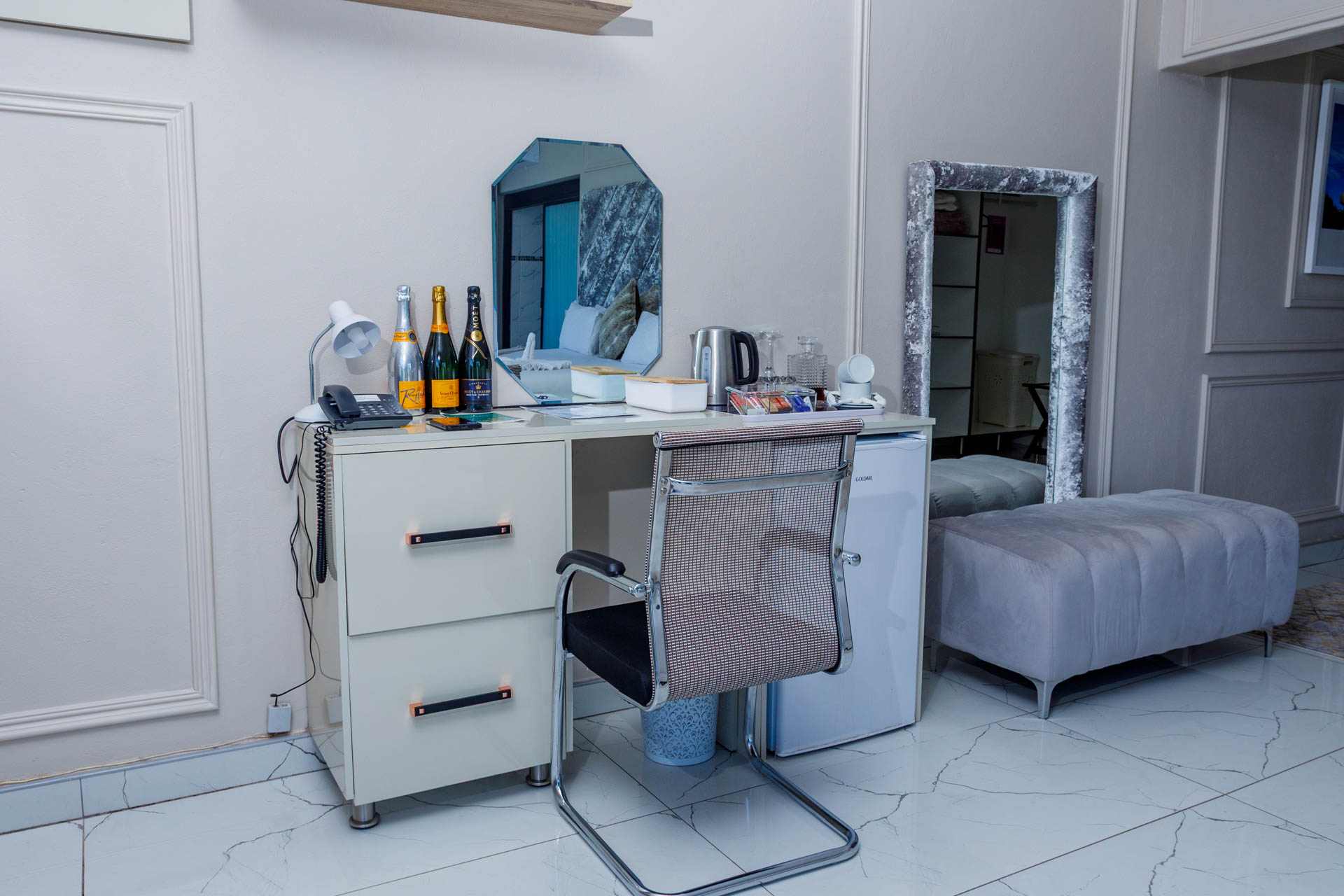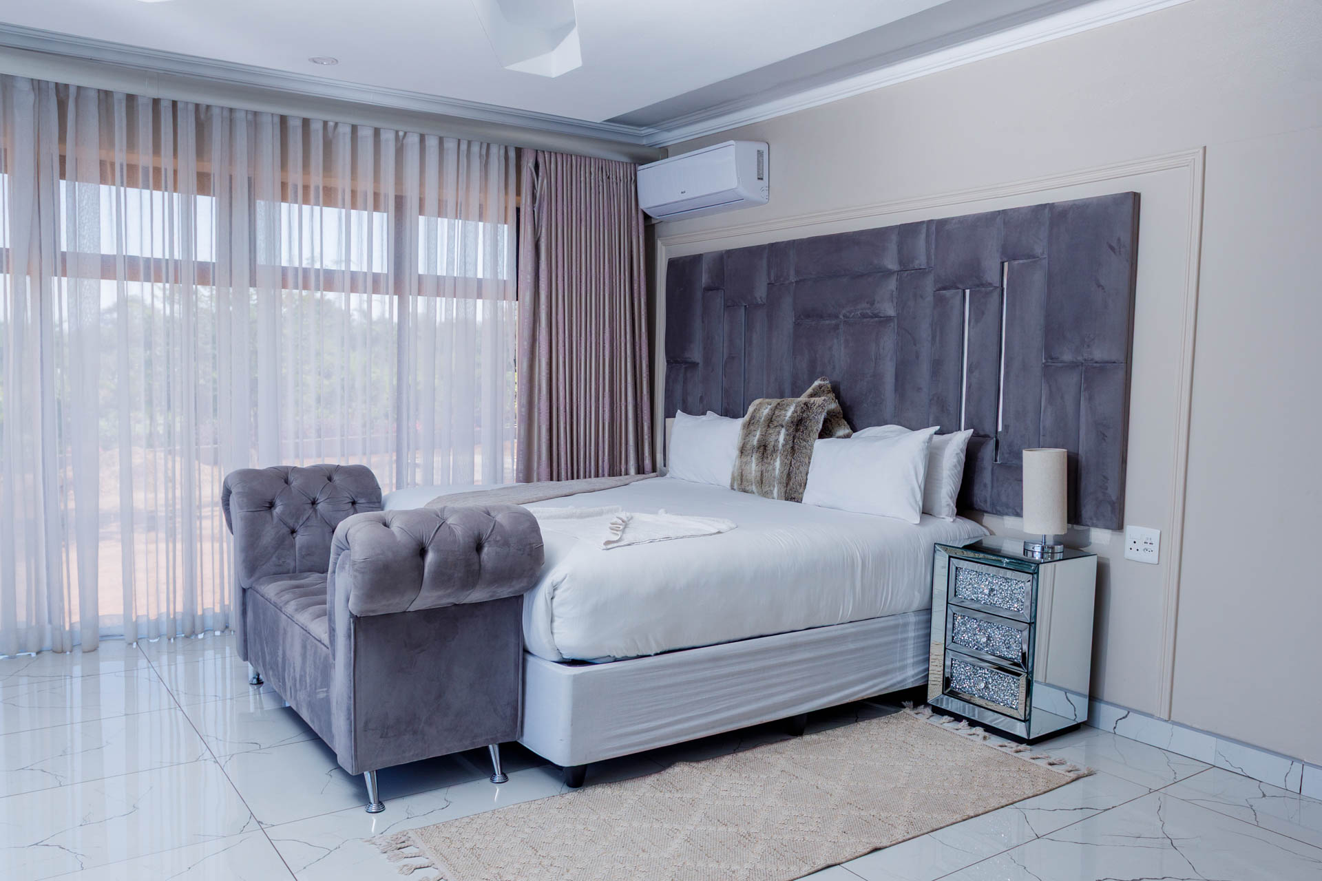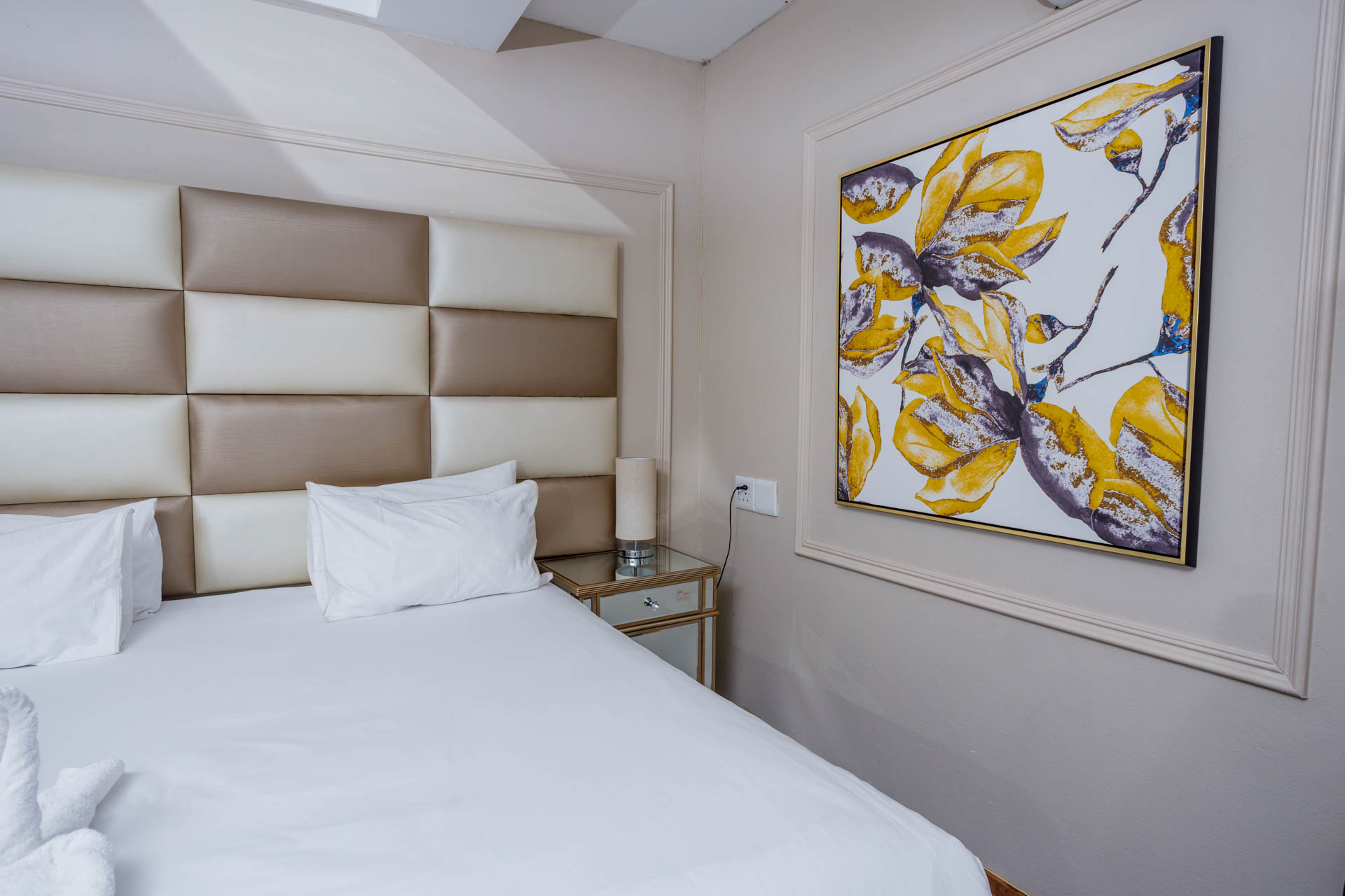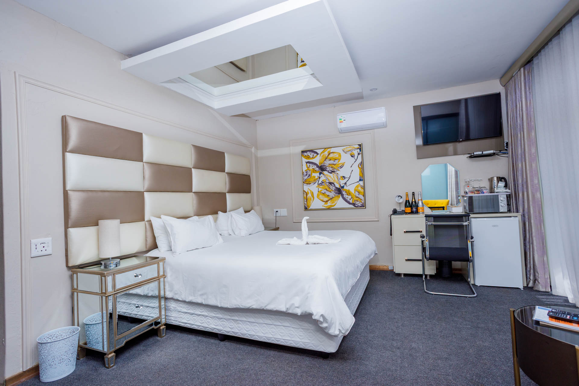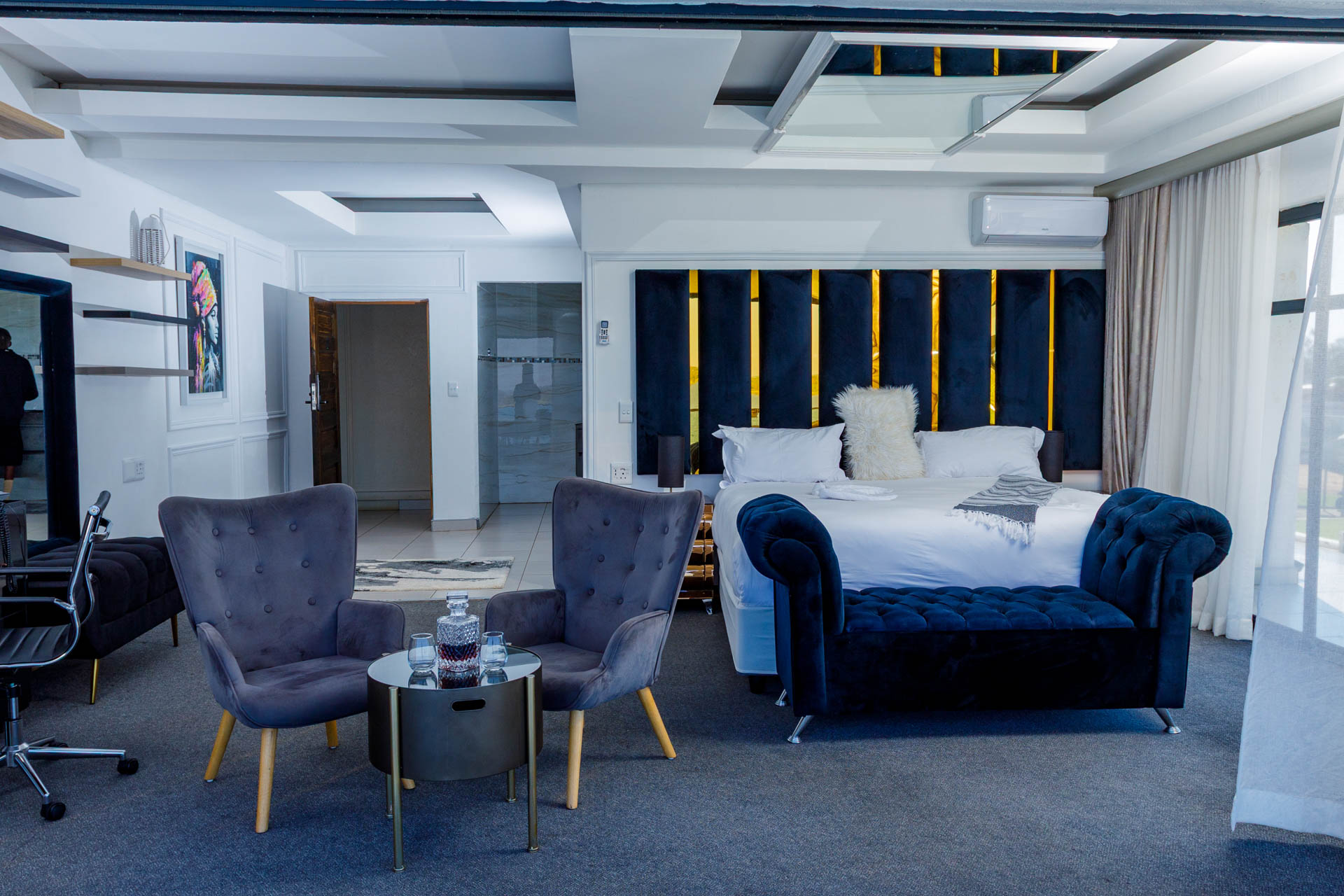 Enjoy a luxurious stay in this elegant en-suite room featuring breathtaking views of both the dam and pool. Perfect for comfort and relaxation with modern finishes and a serene atmosphere.